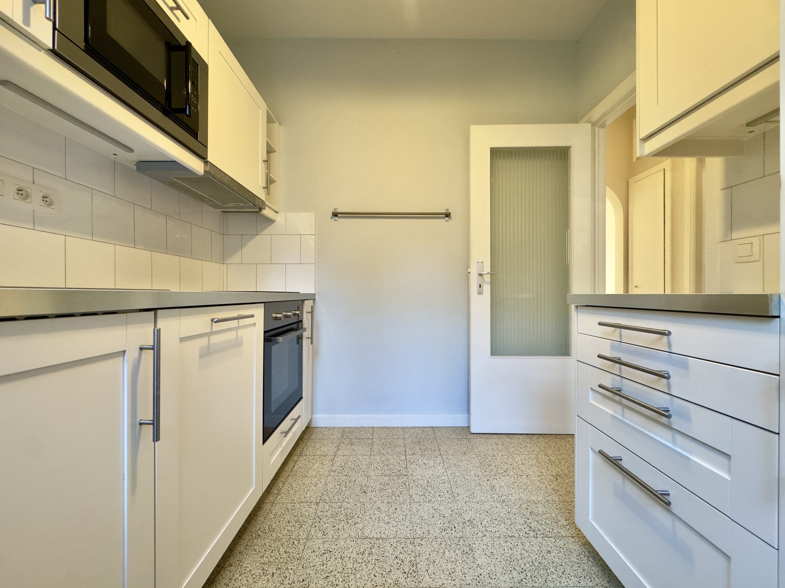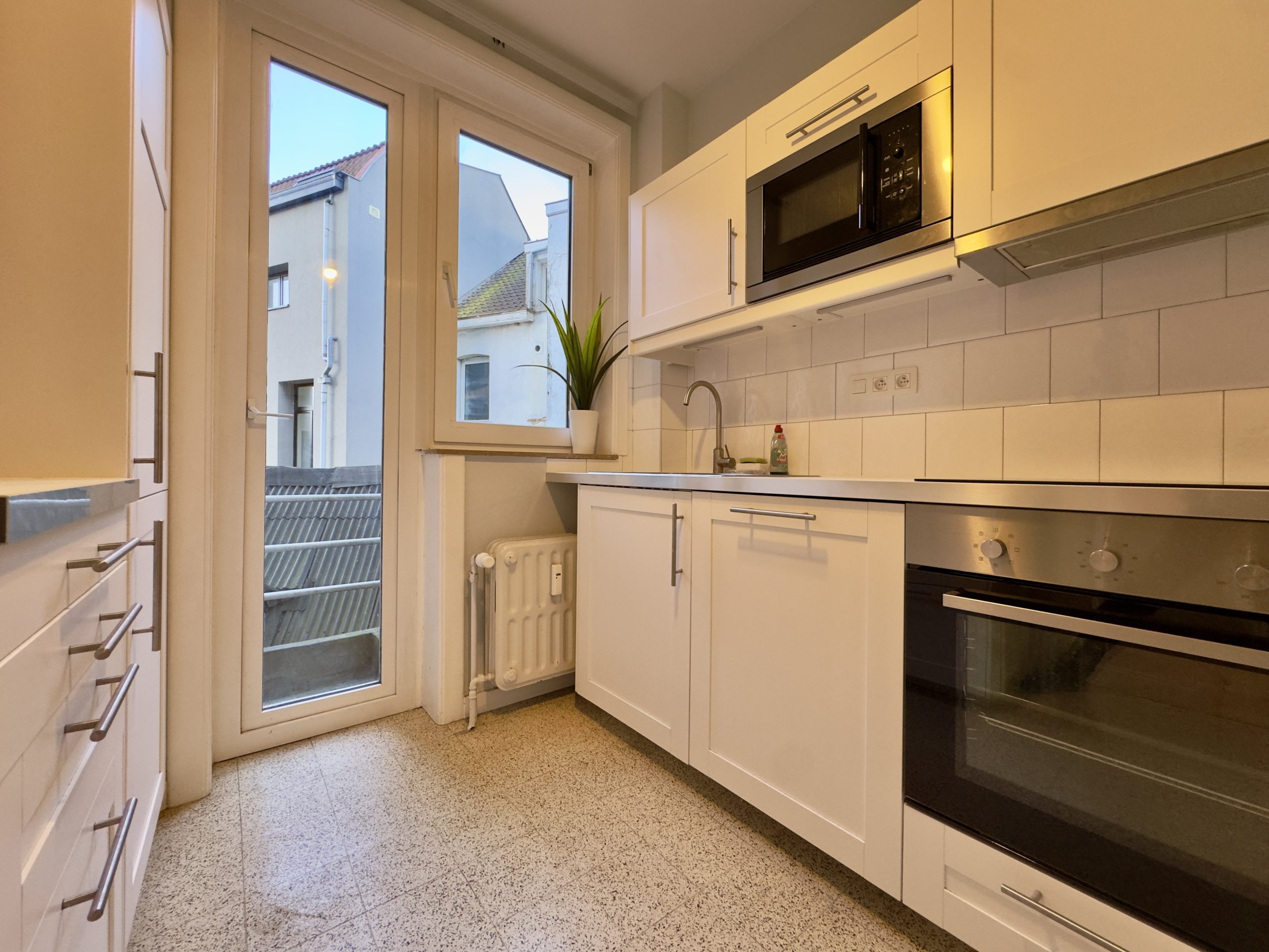Situé sur l'Avenue Louise à quelques pas du Jardin du Roi, magnifique appartement d'une superficie totale de ± 63 m² au 3ème étage d'un bel immeuble résidentiel. Il se compose d'un hall d'entrée avec vestiaire et toilette indépendante, d'un spacieux living (± 20 m²), d'une cuisine indépendante équipée, d'une chambre (± 10 m²), d'une salle de bains avec espace buanderie, chaudière centrale au gaz Vaillant de 2018. Charges : 350€ (entretien des parties communes, syndic, ascenseur, chauffage, eau chaude et froide). 2 emplacements parking intérieurs disponibles à 35.000€/emplacement. PEB : E-. 4 appartements sont disponibles : le 2ème, 3ème 4ème et 5ème étages. Possibilité de créer 2 unités, sous réserve d’acceptation de permis et de faisabilité, pour rehausser l’immeuble de 2 étages et s’aligner à l’immeuble d’à côté. A découvrir au plus vite !!