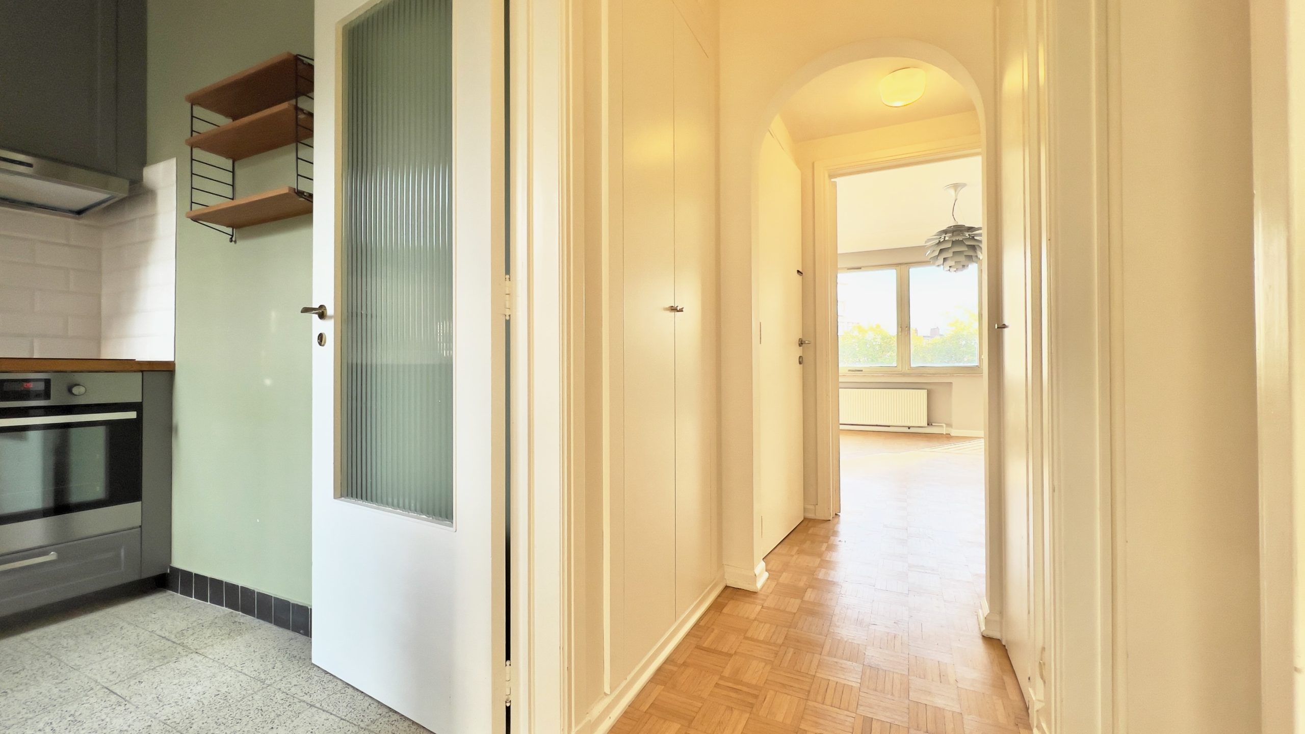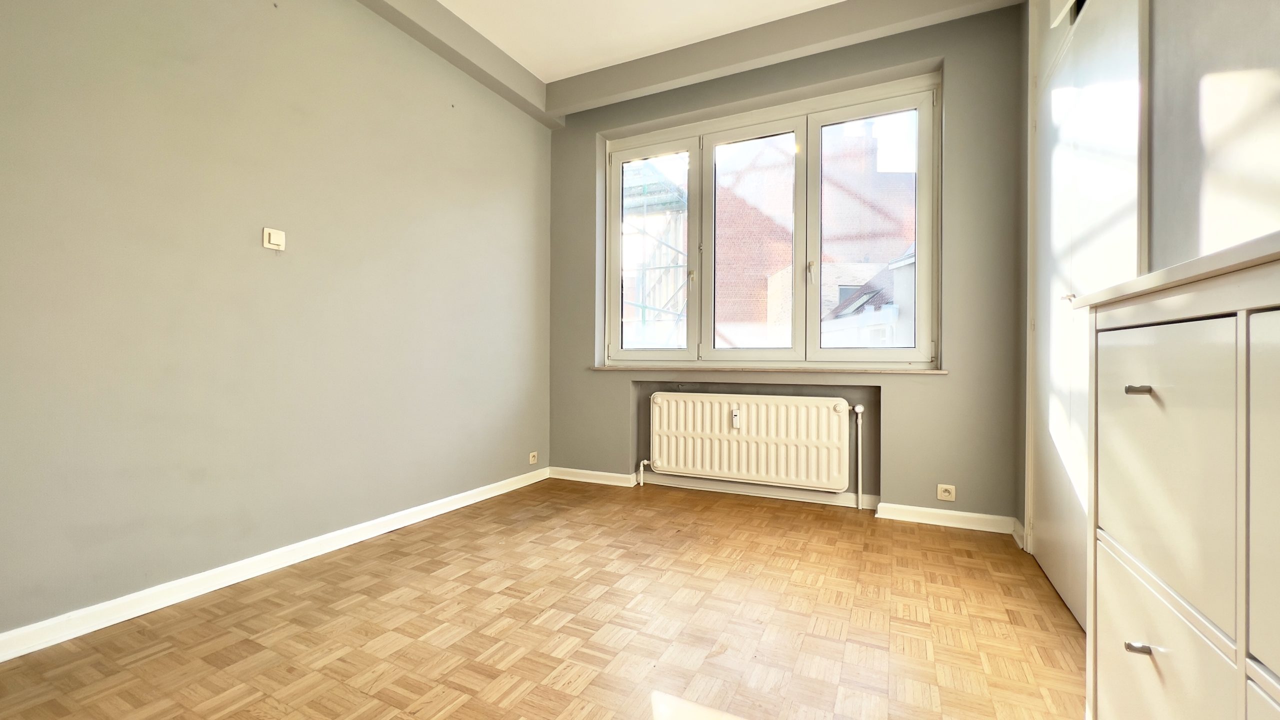 Situé sur l'Avenue Louise à quelques pas du Jardin du Roi, magnifique appartement d'une superficie totale de ± 63 m² au 4ème étage d'un bel immeuble résidentiel. Il se compose d'un hall d'entrée avec vestiaire et toilette indépendante, d'un spacieux living (± 20 m²), d'une cuisine indépendante équipée, d'une chambre (± 10 m²), d'une salle de bains avec espace buanderie, chaudière centrale au gaz Vaillant de 2018. Charges : 350€ (entretien des parties communes, syndic, ascenseur, chauffage, eau chaude et froide). 2 emplacements parking intérieurs disponibles à 35.000€/emplacement. PEB : G. Cet appartement est actuellement loué depuis 4 ans. 4 appartements sont disponibles : le 2ème, 3ème 4ème et 5ème étages. Possibilité de créer 2 unités, sous réserve d’acceptation de permis et de faisabilité, pour rehausser l’immeuble de 2 étages et s’aligner à l’immeuble d’à côté. A découvrir au plus vite !!