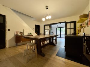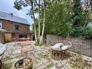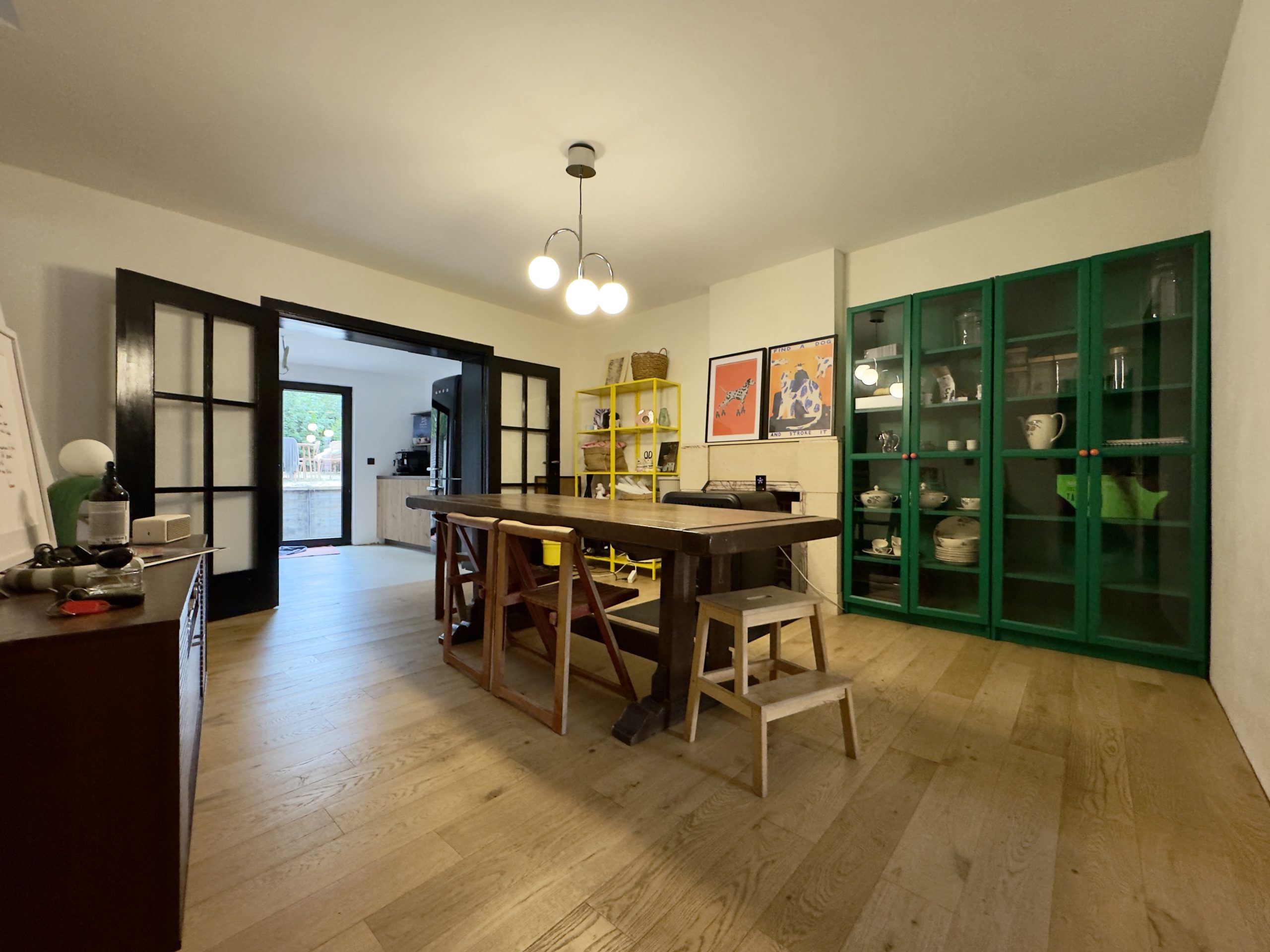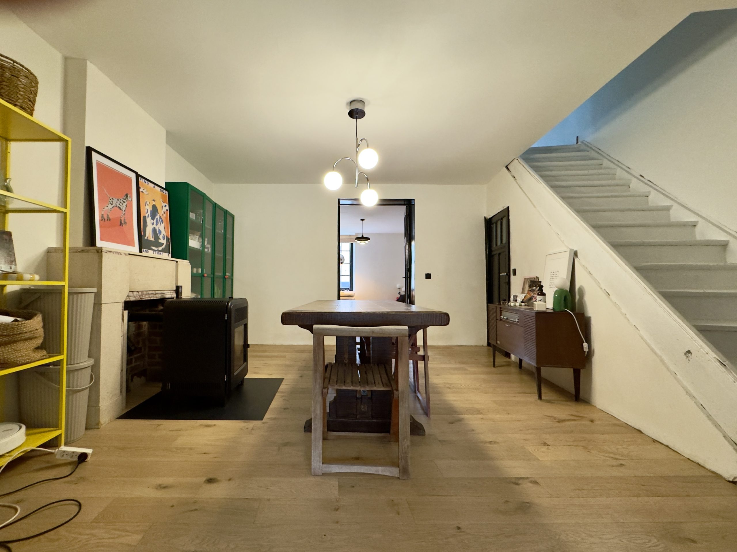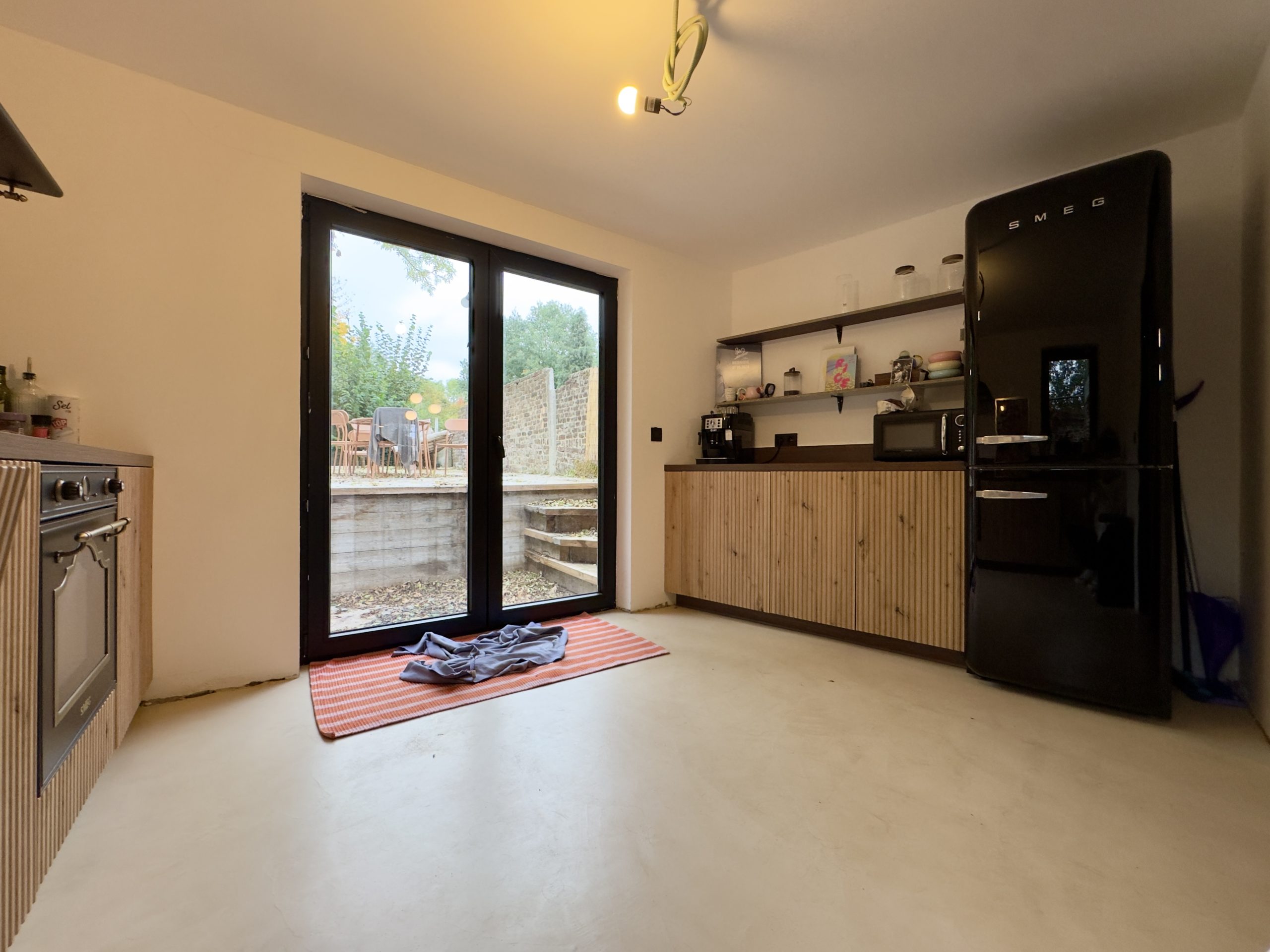 Située dans un environnement calme et verdoyant, maison de charme 3 façades rénovée d'une superficie totale de ± 166 m² avec un grand jardin de ± 600 m². Elle se compose au rez-de-chaussée d’un vaste hall d’entrée (±9 m²), d’un lumineux living de ±55 m² agrémenté d’un poêle à bois fonctionnel, d’une cuisine ouverte équipée, d’une buanderie indépendante (±10 m²) et d’un WC séparé. À l’étage, une hall de nuit, 2 chambres (±13,8 m² et ± 11,2 m²) et 1 salle de bains. Un grenier de ±45 m² offrant un potentiel d’aménagement pour une chambre supplémentaire. Une terrasse et un grand jardin (100m x 6m) à aménager avec une annexe/atelier (±20 m²). Servitude de passage dans le jardin. Un garage (±15 m²) et 2 emplacements de parking extérieur devant la maison. Toiture et façades isolées, châssis PVC double vitrage, pompe à chaleur thermodynamique, électricité conforme, RU en cours. PEB : D. Quelques finitions/travaux sont à prévoir. Un bien rare à découvrir au plus vite avec Pons Realty !!